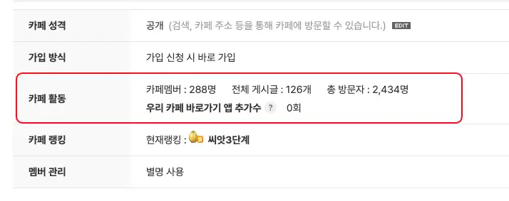 가입 회원수 보다는 게시글 작성 회수 였습니다.