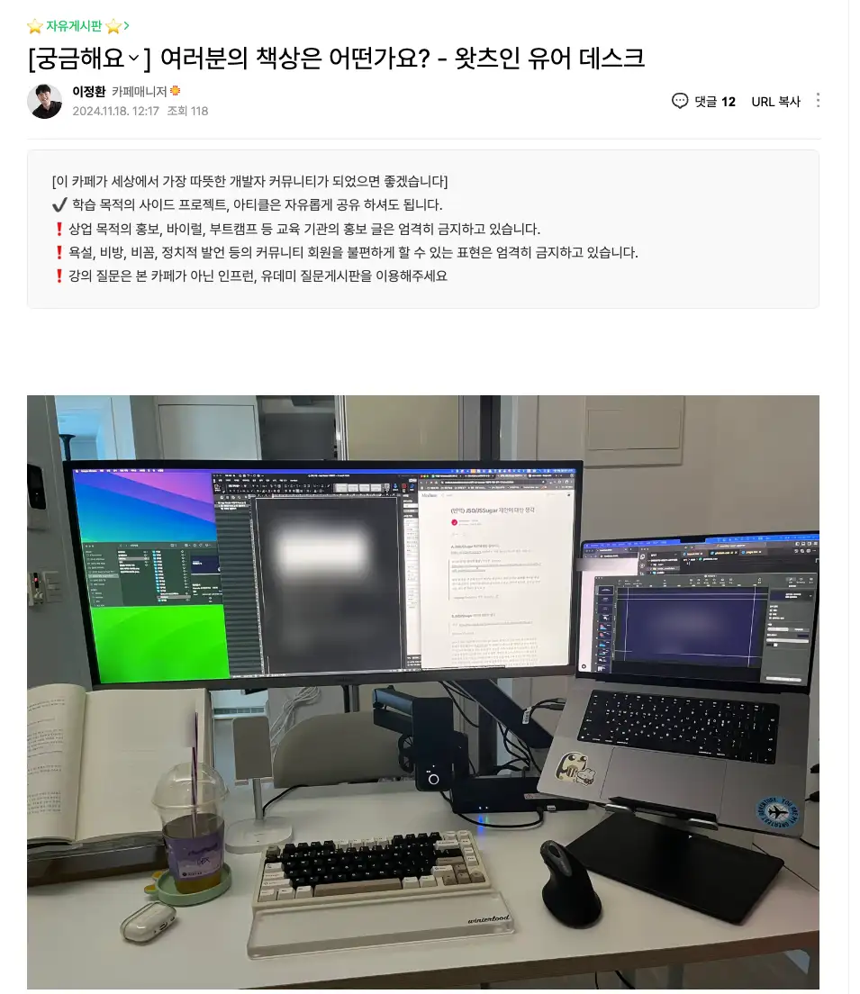 댓글로 4분 정도가 작업 공간을 사진으로 공유해주셨는데 진짜 재밌었어요 👍