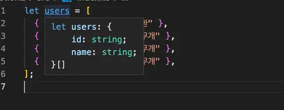 그렇다면 이때 변수 users의 타입은 무엇으로 추론될까요? 앞선 내용(배열고 ㅏㅌ