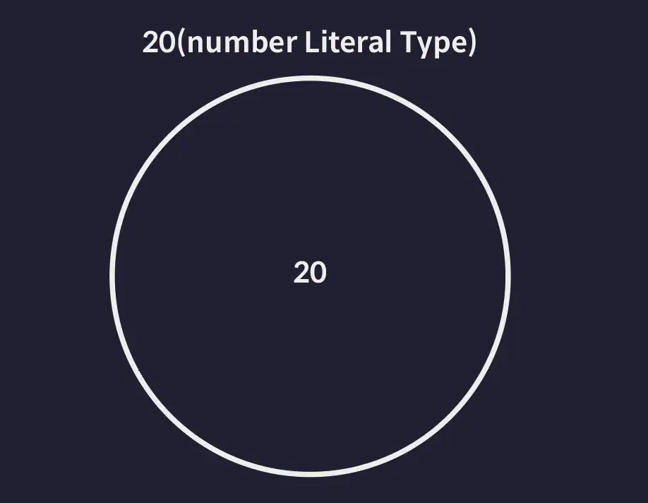 변수 a의 타입은 20입니다. 그러므로 a에는 20이외의 다른 값을 할당할 수 없습니다. 앞서 타입은 모두 집합이라고 했습니다. 따라서 이 20이라는 타입은 다음과 같이 딱 하나의 값만 포함하는 아주 작은 집합입니다.