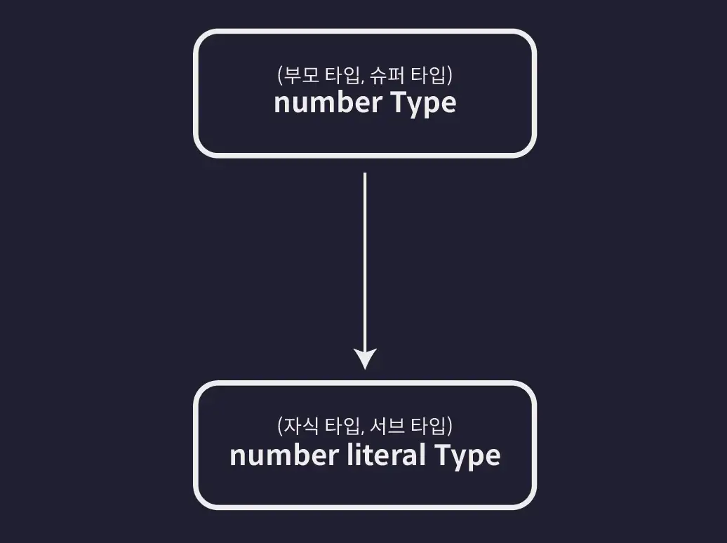 그러므로 number는 number 리터럴의 슈퍼 타입이며. number 리터럴은 number의 서브 타입이라고 할 수 있습니다.