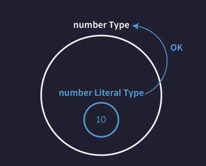 number 타입은 number 리터럴 타입을 포함하는 더 큰 집합입니다. 바꿔 말하면 number 리터럴 타입은 number 타입의 부분 집합입니다.