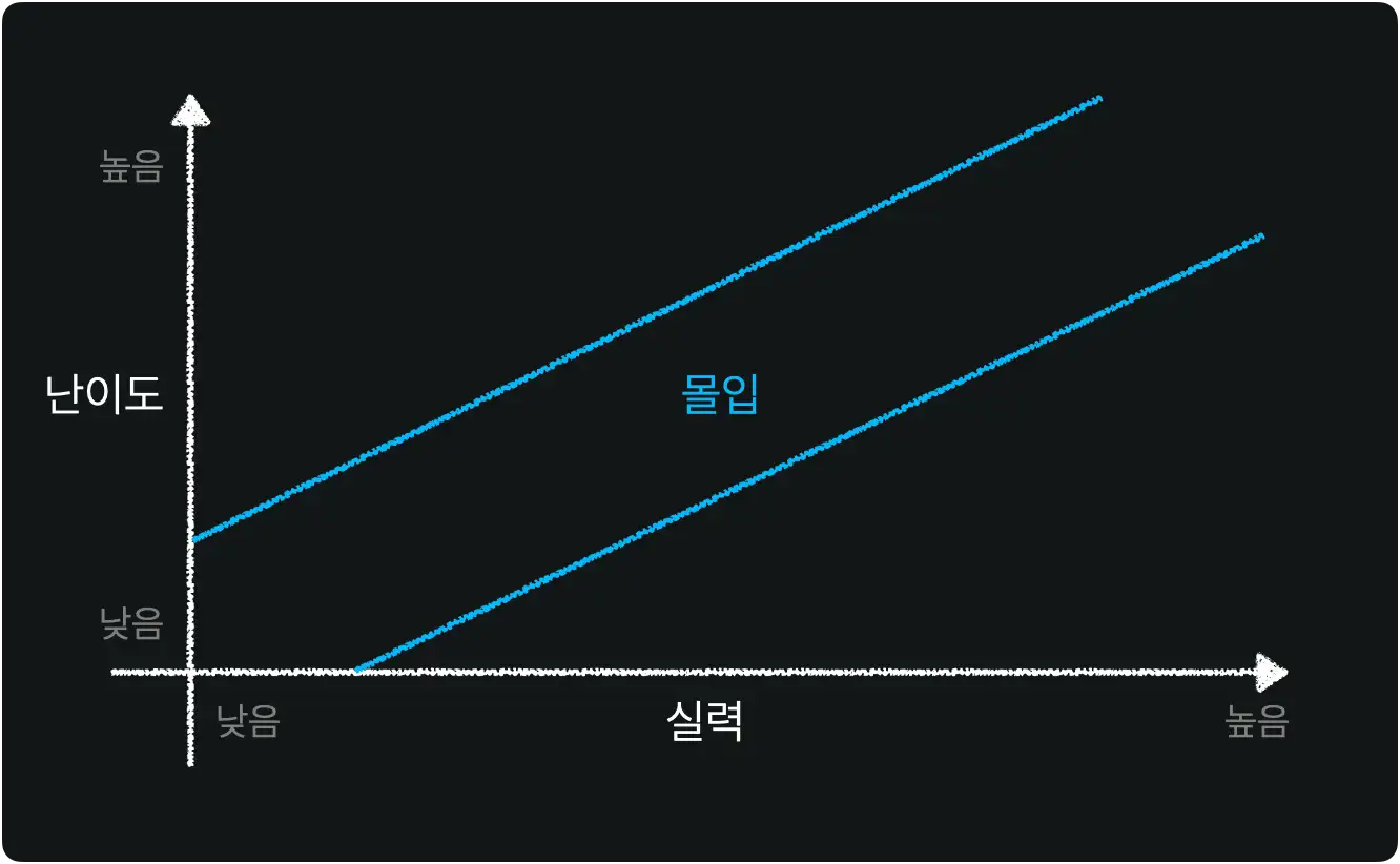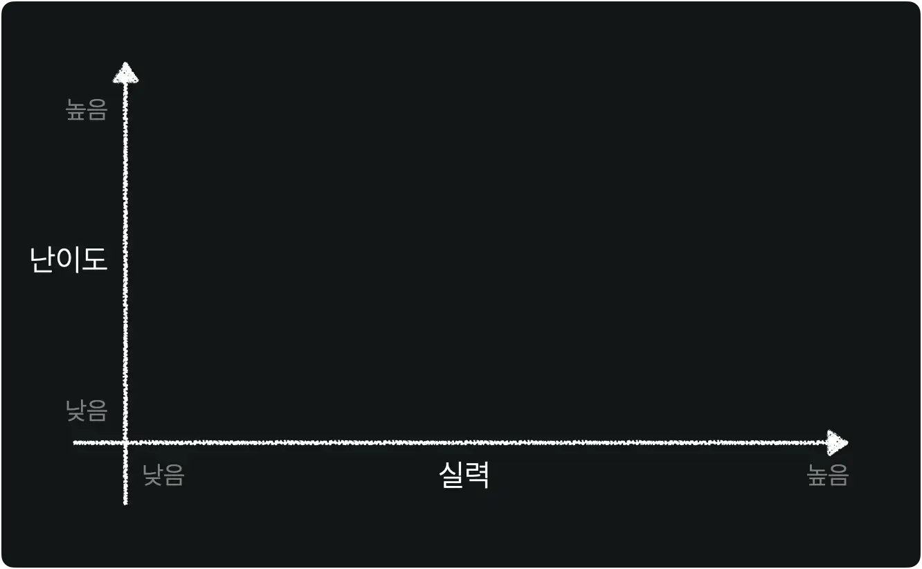 이 몰입 이론 그래프에서 X축은 나의 실력을 나타내고 Y축은 과제나 주제의 난이도를 나타내요